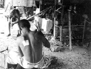 私は父の「カチーン・カッチーン」と石を叩いている姿を覚えている。しかし、仕事場には行けなかった。幼い私は興味本位で行きたくて仕方なかった。行くと両親にひどく怒られた。怪我をさせぬ為だった。写真を残してくれた事を有り難く感謝する。「子は親の背中を見て育つ」というが・・・そのとうりと思う。